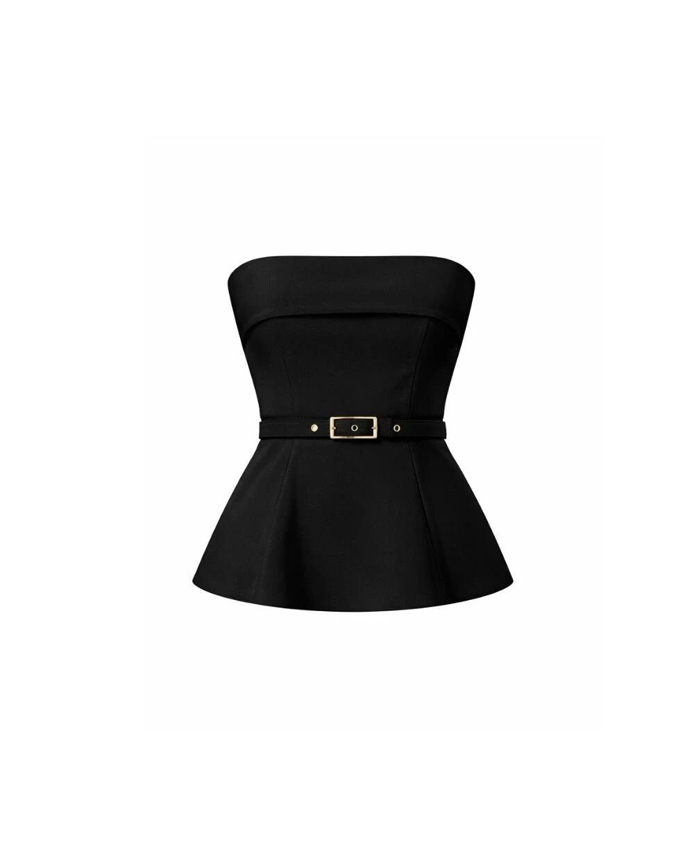 Tomara que caia confeccionado em crepe alfaiataria com modelagem ajustada e fechamento nas costas com zíper de metal. Acompanha cinto.