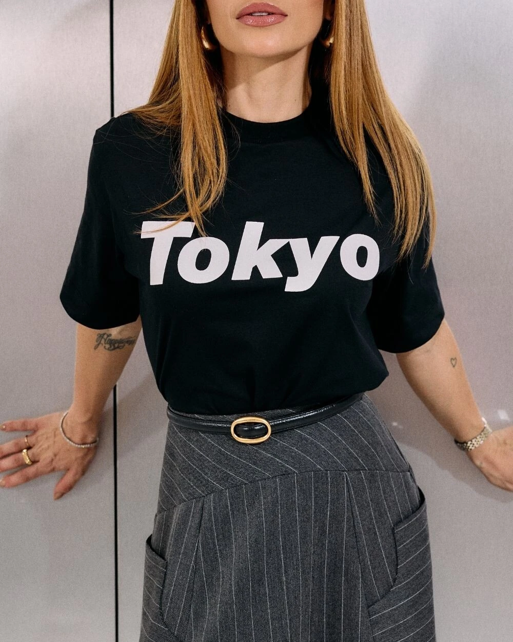 T-shirt em malha de algodão com estampa “Tokyo” em PUF 3D.