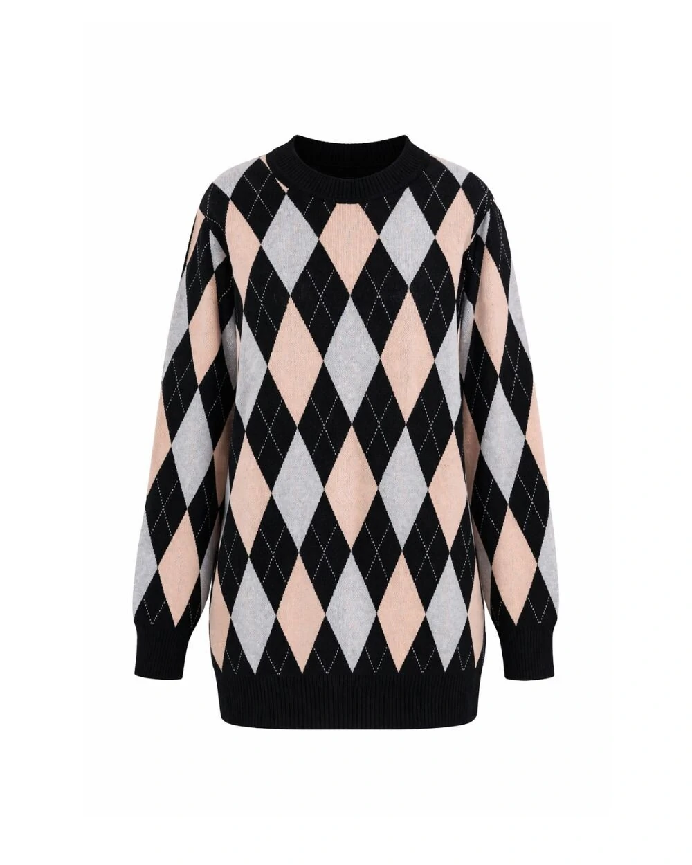 Suéter em tricô com padronagem xadrez tipo argyle.