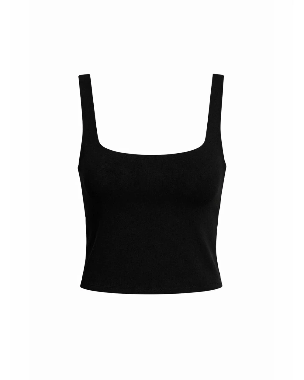 Modelagem ajustada ao corpo com alças médias e decote reto.