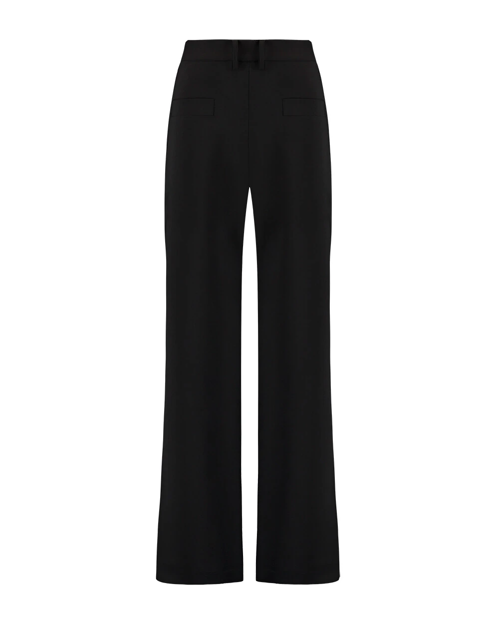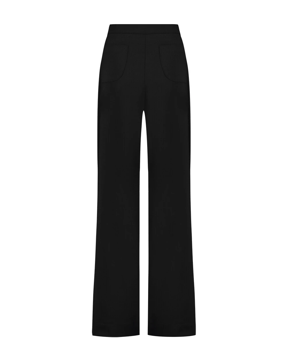 Calça em crepe alfaiataria, detalhes com dois bolsos frontais falsos e passantes centrais no cós. Fechamento com zíper invisível lateral.