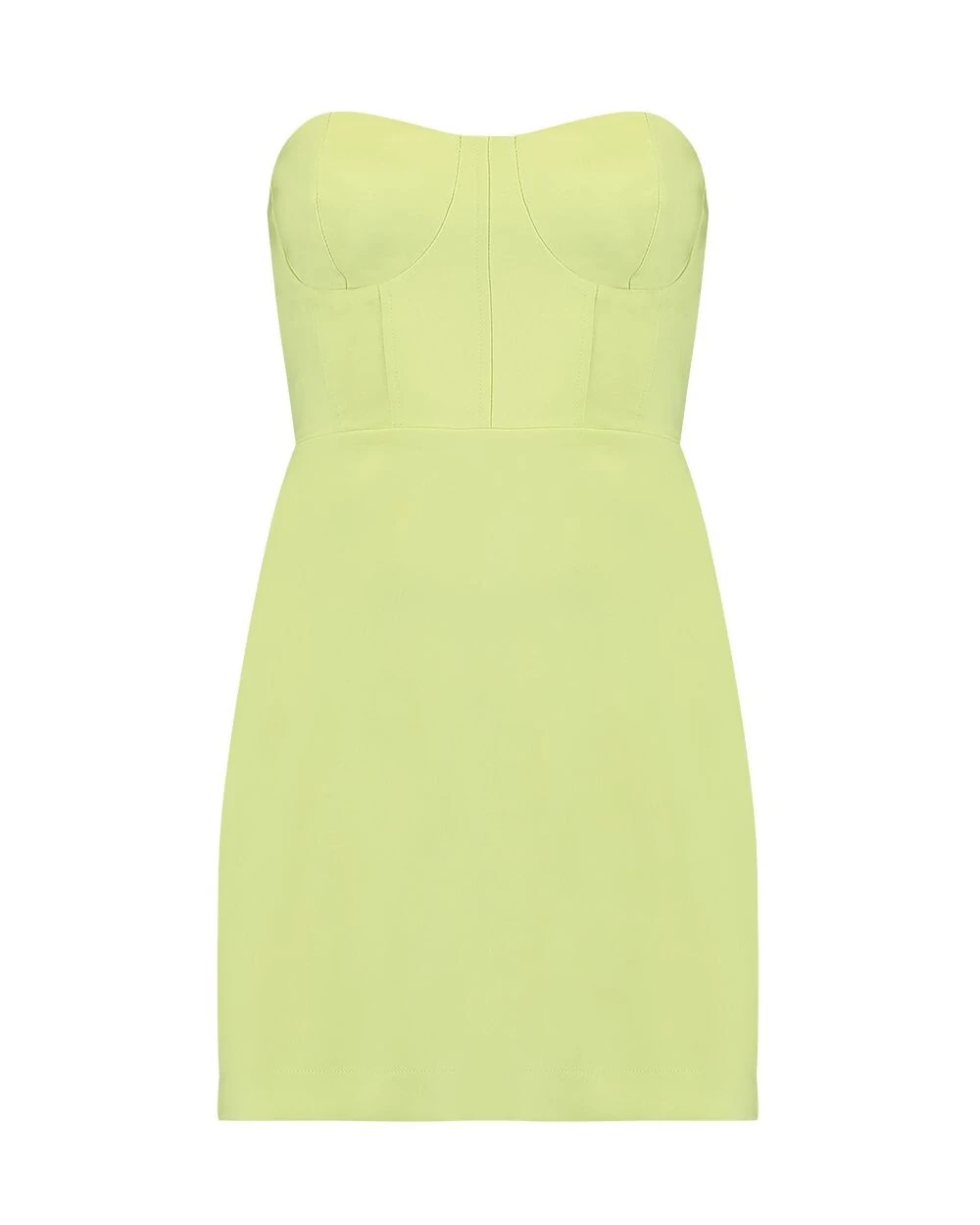 Vestido curto com modelagem tomara que caia, confeccionado em crepe alfaiataria, busto em formato coração e fechamento nas costas com zíper invisível. Acompanha peplum removível.
